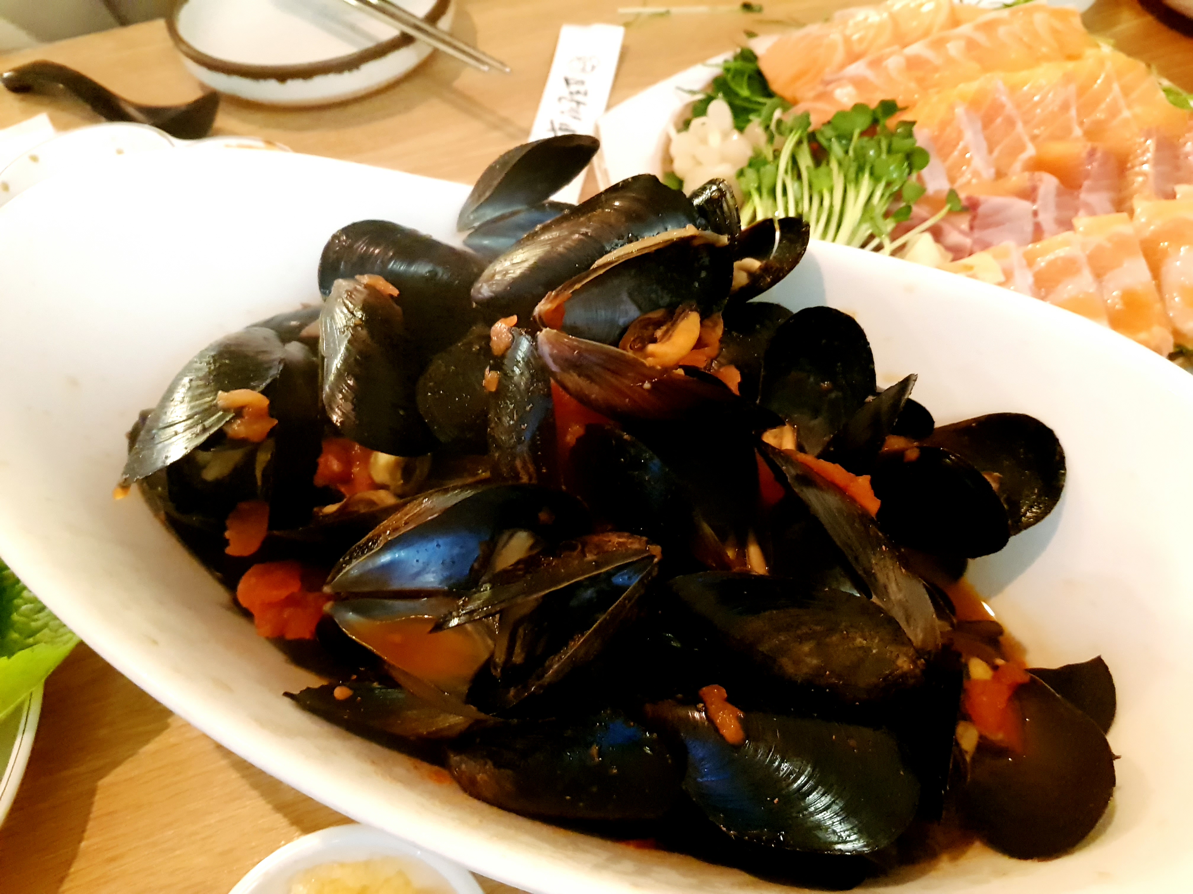 그치요 이제 시작이지요. 하하:) 요란한부엌에서는 회 말고도 또 유명한 게 있다고해요! 토마토 홍합!!!!!